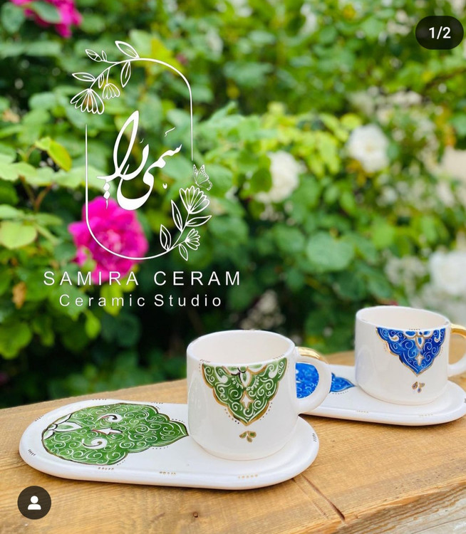 فنجان و زیری طرح سنتی سرامیکی در دو رنگ سبز و لاجوردی